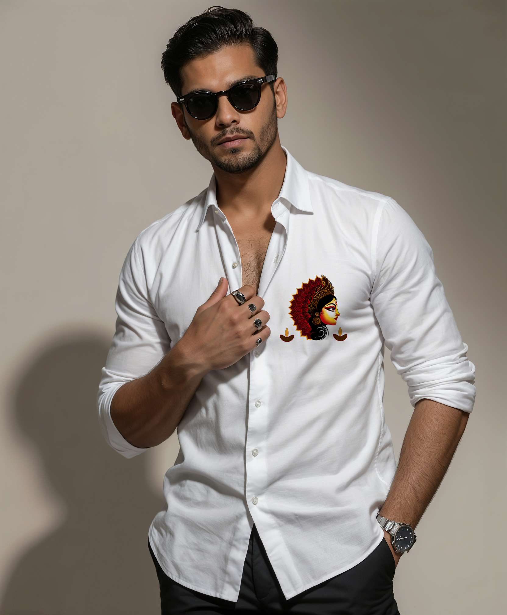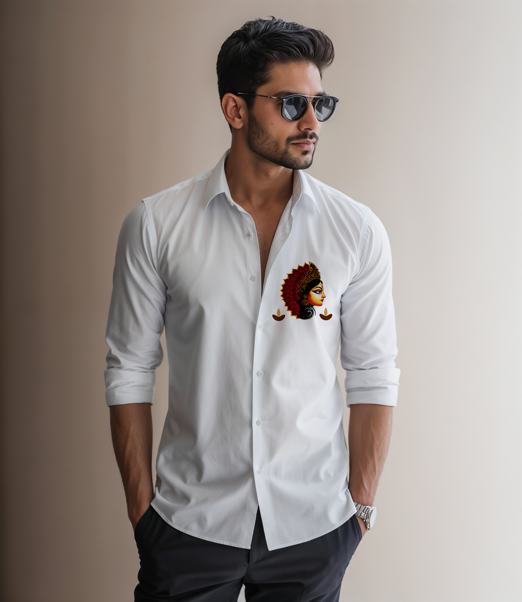 The handmade Durga Maa print is a powerful representation of Shakti (divine feminine energy), making this shirt perfect for Navratri, pujas, temple visits, spiritual gatherings, and everyday wear. Whether you pair it with jeans, chinos, or ethnic pants, this shirt blends modern fashion with devotion.