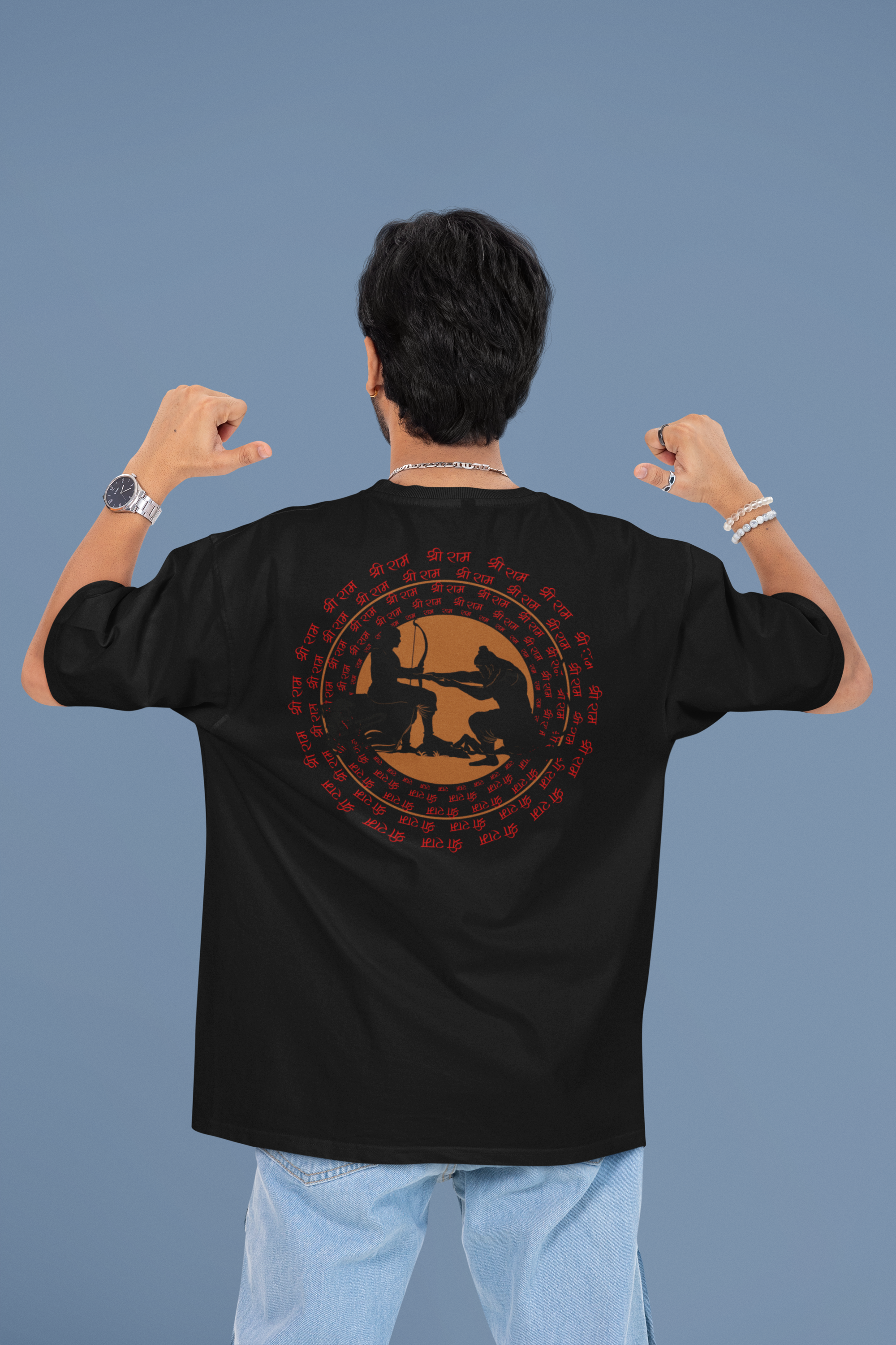 Design: Bold “Jai Shree Ram” print for a spiritual statement